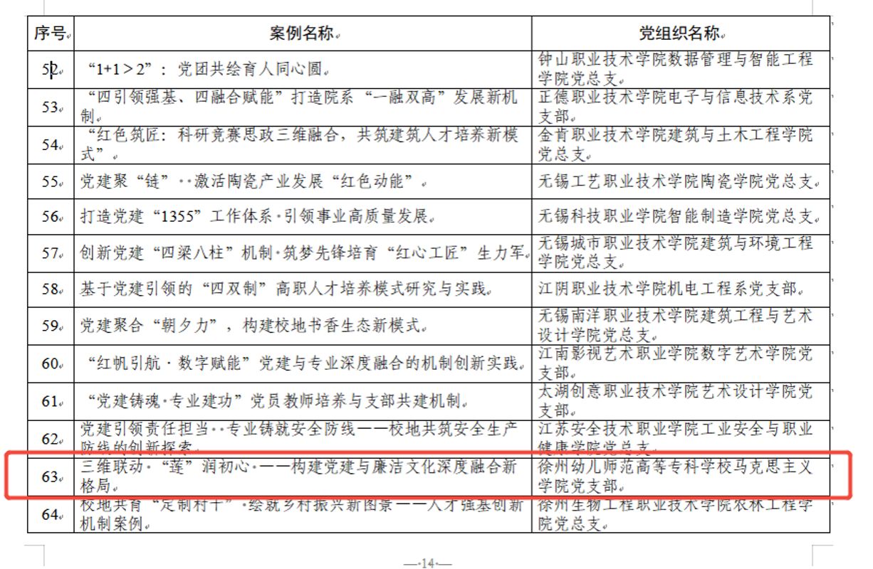8月25日,省委教育工委公布的2023—2024年度江苏高校党建工作创新案例名单公示中,马克思主义学院党支部《三维联动“莲”润初心——构建党建与廉洁文化深度融合新格局》案例获三等奖。