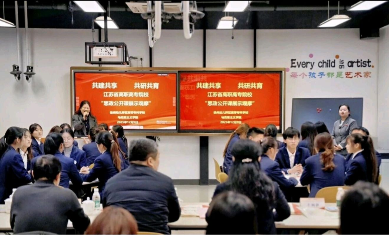 2025年12月9日,江苏省高职高专院校“思政课公开课展示观摩”活动在我校碧螺校区B101教室圆满举行。校长孙卫芳、党委副书记曹利群莅临现场,我校马院全体教师和来自在徐的兄弟院校思政课数十名教师全程参加观摩活动。展示活动由我院书记、院长丰娴静主持。